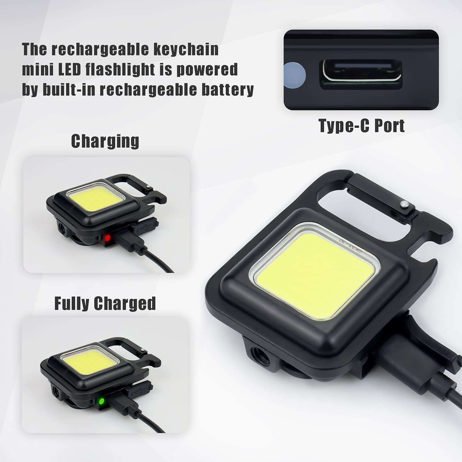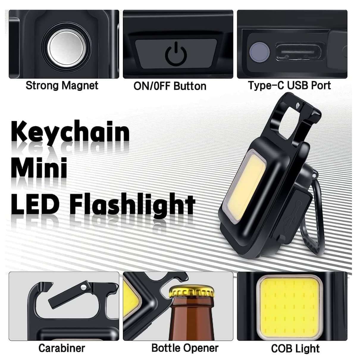 • Super Bright COB Light: The keychain flashlight has a powerful LED to provide 800 lumens illumination at maximum while maintaining the portable size and minimalist design.